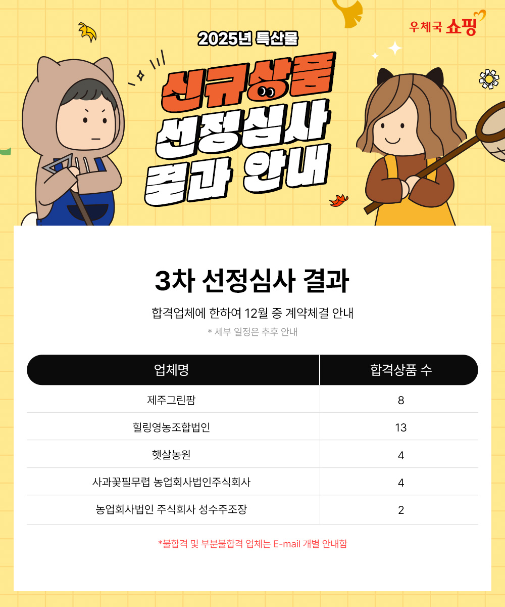 2025년 우체국쇼핑 4차 특산물 신규상품 서류심사 결과